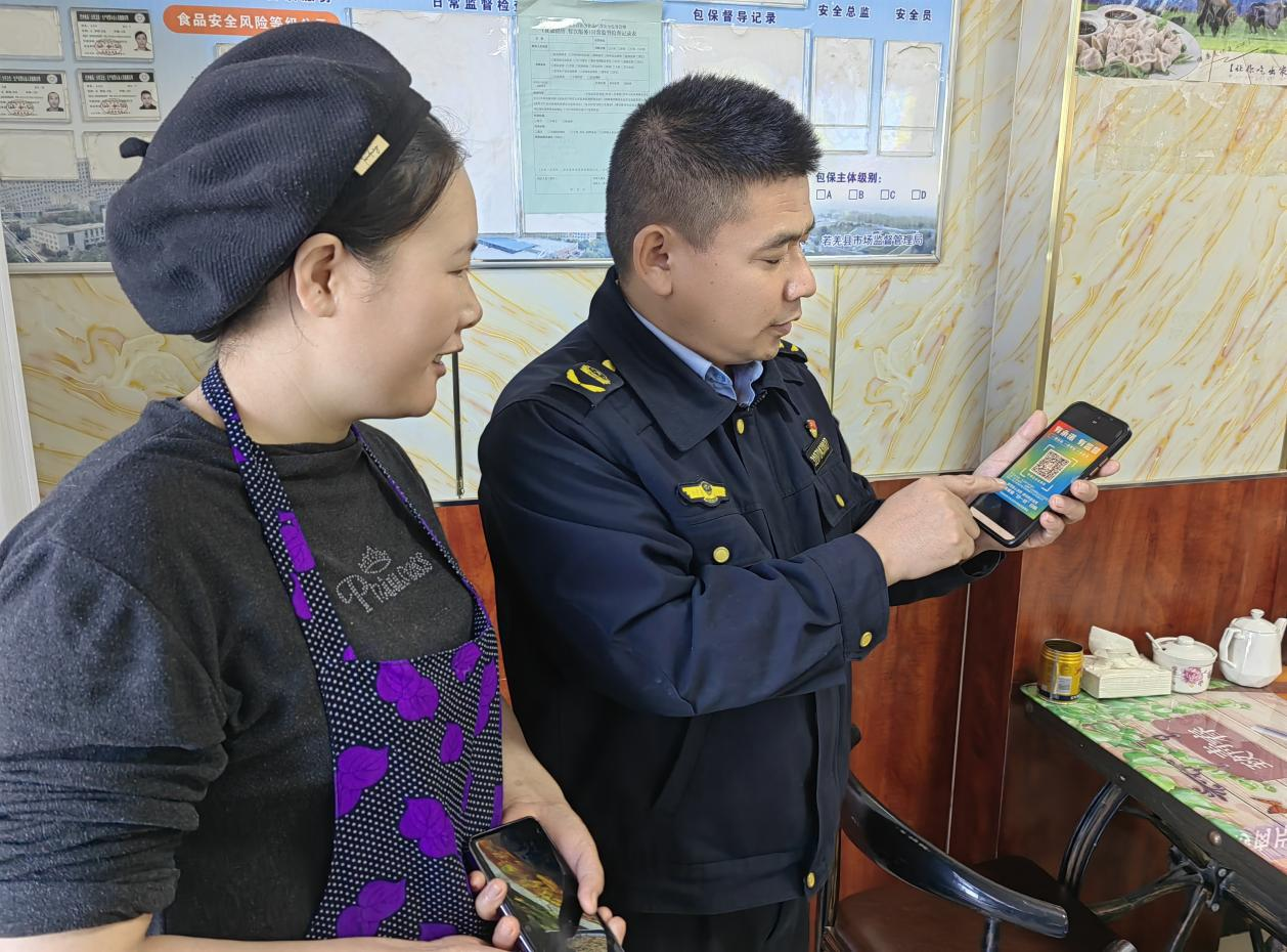 二是积极推广消费者扫一扫“丝路有信”新疆企业信用码,了解店铺基本情况。消费者通过二维码可查询到该市场主体的基本信息和行政处罚情况,还可以对该店的质量水平、服务水平、价格合格、售后保障等进行评价,如果出现消费投诉,可直接点击12315维权。让消费者明明白白消费,放心消费,进一步加强了信用监管的规范和社会信用体系建设知识,推广经营主体信用承诺。